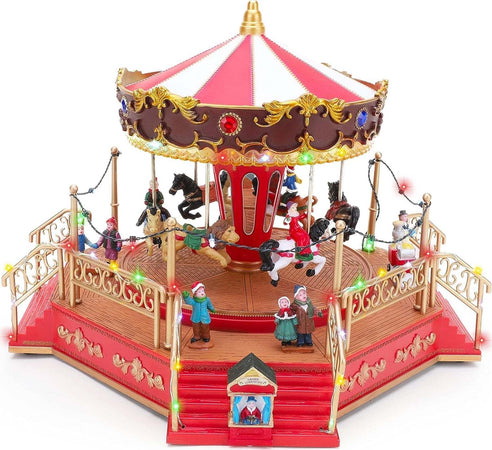 Il Carosello natalizio con animazioni e suoni è un delizioso prodotto progettato per aggiungere un tocco di magia e divertimento al tuo villaggio di Natale.