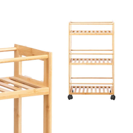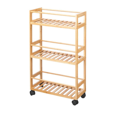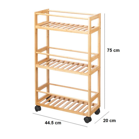 Carrello Bagno Legno Bambù 20x44.5 H75cm Slim 4Ruote Legno Naturale Salvaspazio