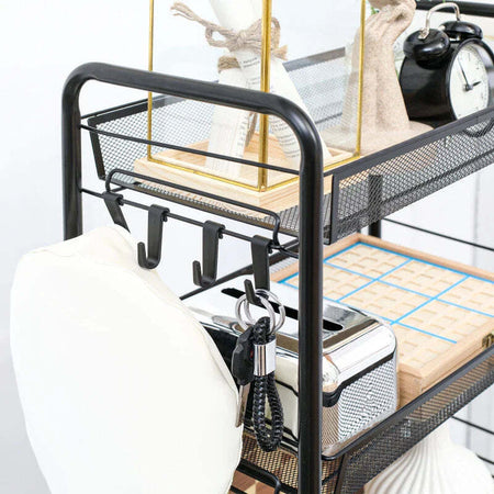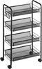 Carrello da Cucina a 4 Ripiani Rimovibili con 4 Ganci e Ruote, in Acciaio e Plastica PP, 45x26.5x84 cm, Nero KU9850-163KU9