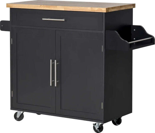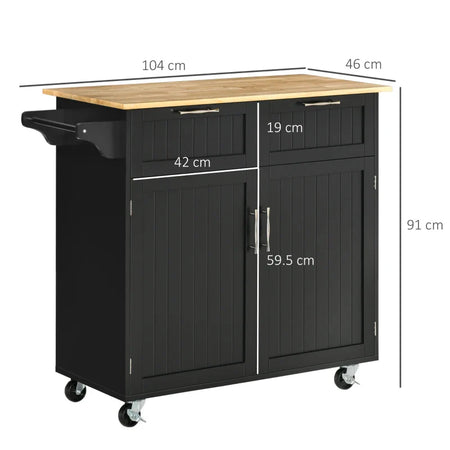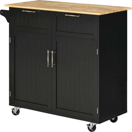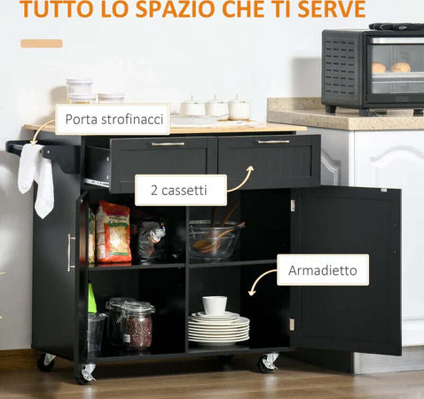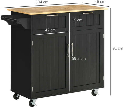 Carrello da Cucina Multiuso in Legno con 2 Cassetti, Armadietto e 4 Ruote, 104x46x91cm, Nero PL6801-203V00BKPL6