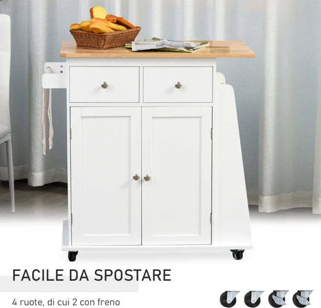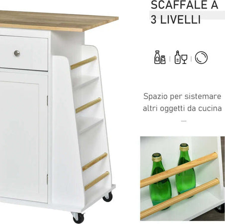 Carrello da Cucina Portaspezie a 3 Livelli e 4 Ruote in MDF e Truciolato, 89x45x89cm, Bianco ER3801-163ER3