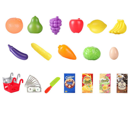 Nuovo e realistico carrello della spesa per i più piccoli, con un ricco assortimento di alimenti giocattoli.
