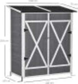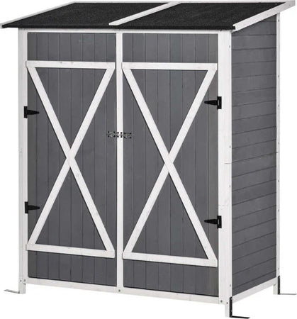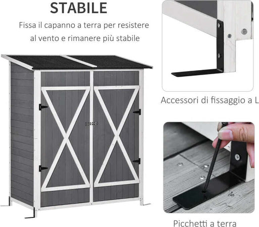 Casetta in Legno da Giardino con 2 Ante, Armadio da Esterno Porta Attrezzi da Giardino con uno Sgabello, 139x75x147/160cm DF5845-353V01DF5