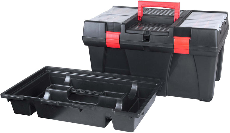 Cassetta degli attrezzi nera con manico rosso resistente solida beast