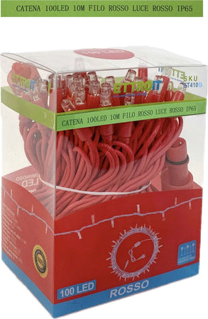 catena luminosa 100 led 10 metri filo rosso luce rosso ip65 /ET4109