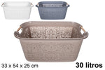 Cesta Portabiancheria in Plastica con Manici in Legno 30L