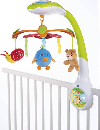 Chicco Giostrina per Culla Neonato Foresta Magica Con Proiettore, Carillon Elettronico per Neonati Con Musica Rilassante E Proiettore Luci per Culla E Lettino, Con 3 Peluche Removibili, Giochi Neonato 0+ Mesi