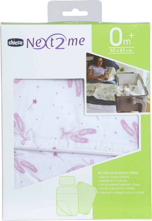 Chicco Set Lenzuola Culla 3 Pezzi Next2Me Set Lenzuola Culla, Pink Ballet, Ballet, Federa Cuscino + Lenzuolo + Copri-Materasso, due colori, neonato, neonata