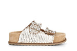 Ciabatta in pelle intrecciata con doppia fibbia gioiello fondo alto