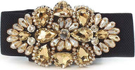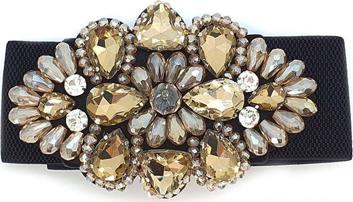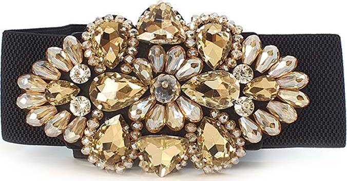 Cintura Donna Oro Fascia Larga Fiore E Pietre in Tessuto Elasticizzato Con Gioiello in Strass Sulla Parte Frontale Retro Con Chiusura a Clip 68 x73cm CLFC1638211