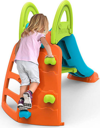 Il nuovo scivolo CLIMB & SLIDE è uno scivolo super divertente con una super parete da arrampicata, lo scivolo più divertente di sempre! I bambini di età superiore ai 3 anni possono giocare come al solito con questo fantastico scivolo e arrampicarsi sulla parete con i suoi 5 gradini. È lo scivolo perfetto per far sviluppare ai bambini l'uso delle mani, l'equilibrio e la forza.