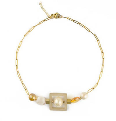Collana Donna Girocollo in Vetro Di Murano Avorio Bijou Fashion Artigianale Made in Italy Collana Girocollo Con Perle Realizzate a Mano Catene E Chiusura Gancetto 46 Cm