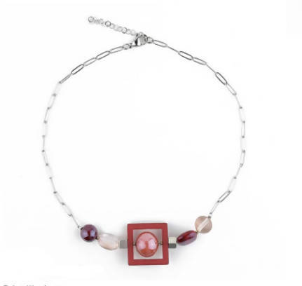 Collana Donna Girocollo in Vetro Di Murano Rosso Bijou Fashion Artigianale Made in Italy Collana Girocollo Con Perle Realizzate a Mano Catene E Chiusura Gancetto 46 Cm