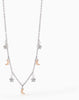 Collana da donna di Mabina Gioielli. Collana in argento 925 bicolore con ciondoli alternati a forma di luna e a forma di stella in pavé di zirconi. Chiusura con moschettone. Misura unica, lunghezza 42 cm.
