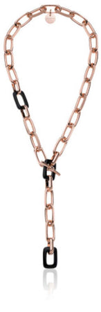 Collana di catena forzatina con bagno in oro e maglie in onice nera naturale. Grazie alla versatile chiusura a T-bar, questa collana può essere indossata a girocollo o ad Y. Un gioiello dal design unico che incorpora pietre naturali certificate ed offre tutto lo stile e la sapienza orafa UNOAERRE.
