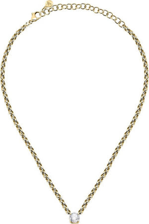 Collana MORELLATO da donna collezione Poetica realizzata in acciaio dorato con pendente cristallo bianco. Lunghezza regolabile 35/42 cm