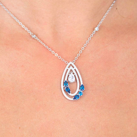 Collana Morellato da donna collezione 'Tesori' realizzata in argento 925 con pendente con zirconi bianchi e azzurri. Lunghezza 45 cm