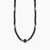 Collana da uomo in argento rodiato con Agata nera, giada verde e sfera centrale con zirconi neri.