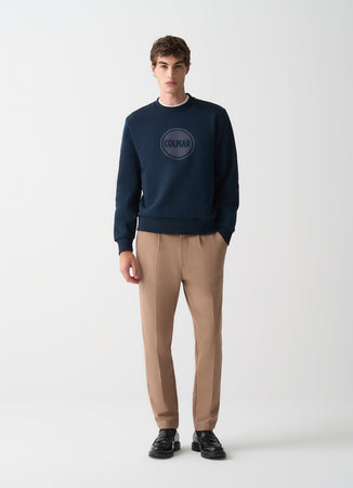 Colmar Felpa uomo girocollo logata in cotone felpato blu