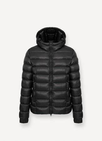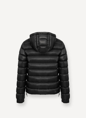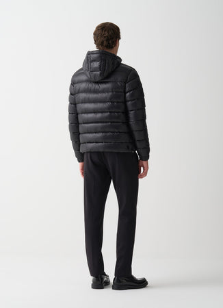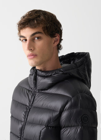 Colmar Piumino uomo nero lucido con cappuccio fisso in tessuto riciclato