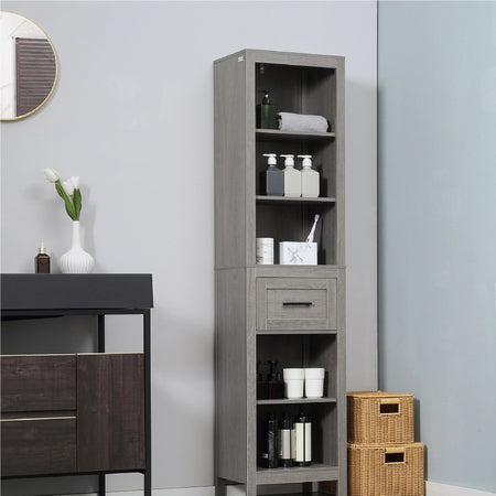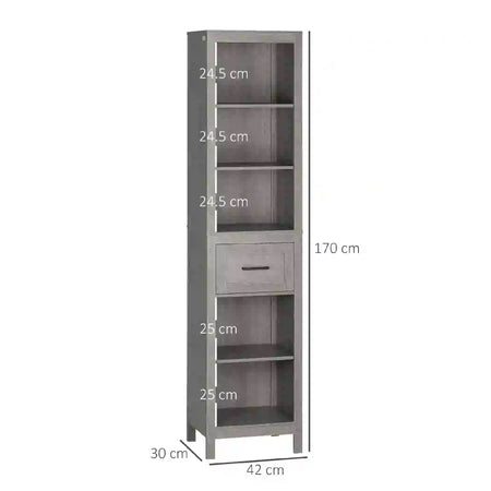 Colonna Bagno con 5 Ripiani Aperti 1 Cassetto, 42x30 h170 cm Grigio