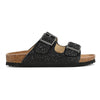 Luminoso e divertente, questo sandalo tempestato di glitter saprà far brillare le donne di tutte le età e in ogni occasione. La suola in pelle scamosciata e la tomaia scintillante donano al passo comfort e stile. Questo modello sfugge dai look strettamente serali poiché è perfetto anche con freschi abiti da giorno, a tinte forti o total white. Per chi ama brillare solo di sera sarà perfetto con pantalone nero a sigaretta e top in lurex o, perché no, mini dress full paillettes.