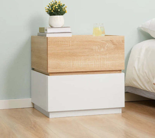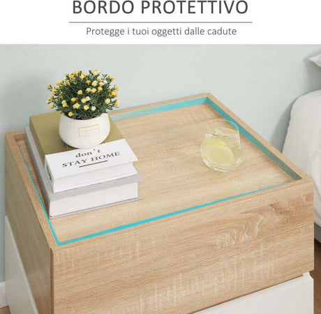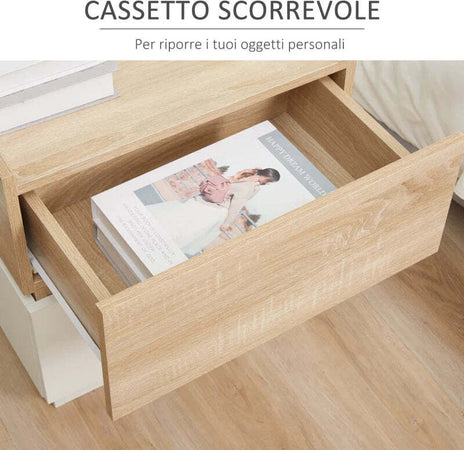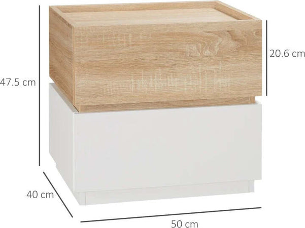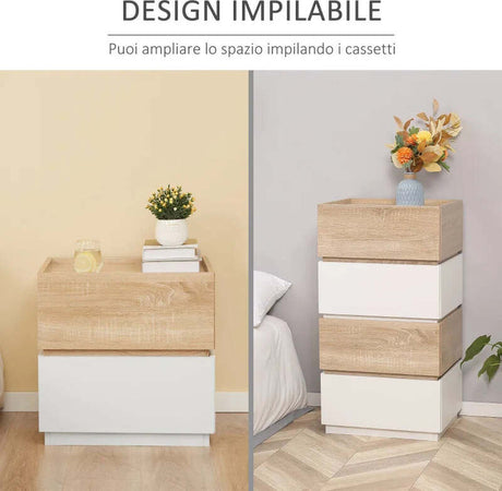 Comodino con 2 Cassetti in Legno, Design Moderno e Impilabile, 50x40x47.5cm AS3831-476NDAS3