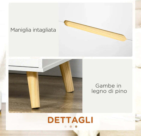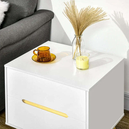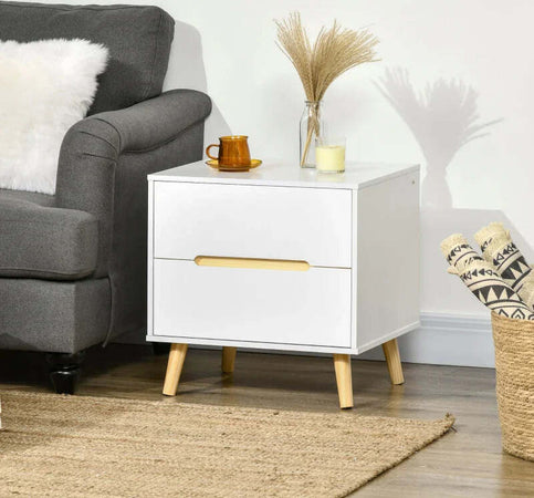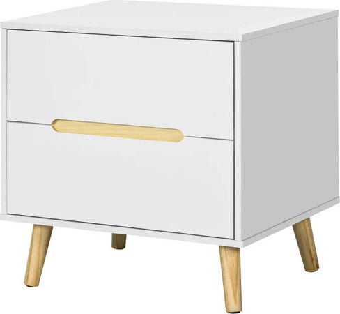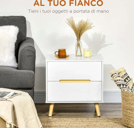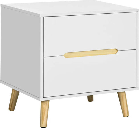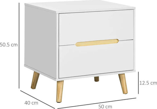 Comodino Moderno con 2 Cassetti in Truciolato e Gambe in Legno di Pino, 50Lx40Px50.5A cm, Bianco HU2831-592V00WTHU2