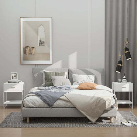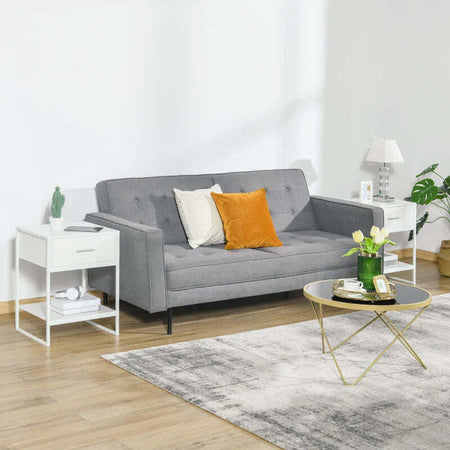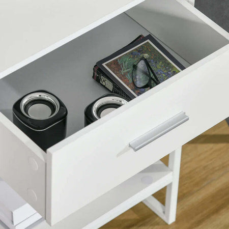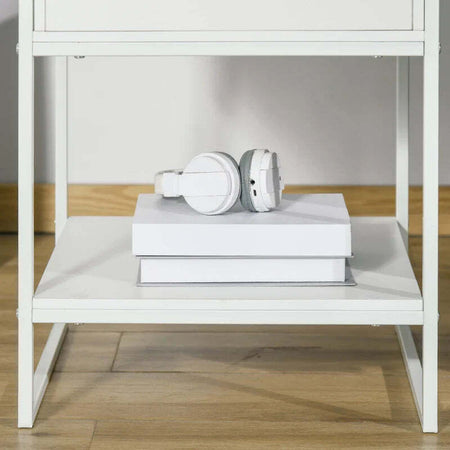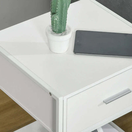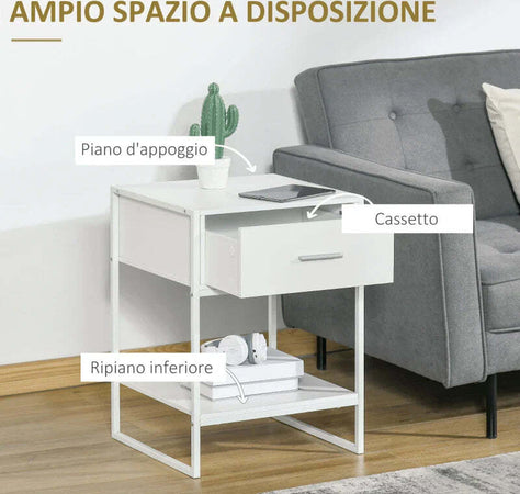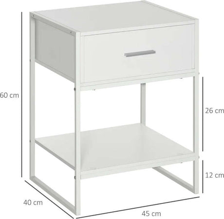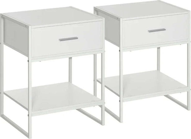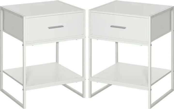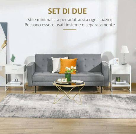 Comodino Moderno Set 2 Pezzi con Cassetto e Ripiano Aperto per Camera da Letto e Soggiorno, in MDF e Acciaio, 45x40x60cm, Bianco TY8831-534V01WTTY8