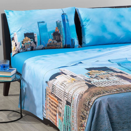 Completo lenzuola copriletto matrimoniale Caleffi art.Freedom tower
