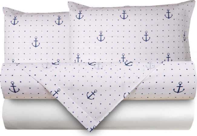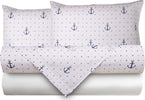 Completo Letto Lenzuola Federe Bifaccia Double Face Stampa Digitale In Cotone Made In Italy Ancore