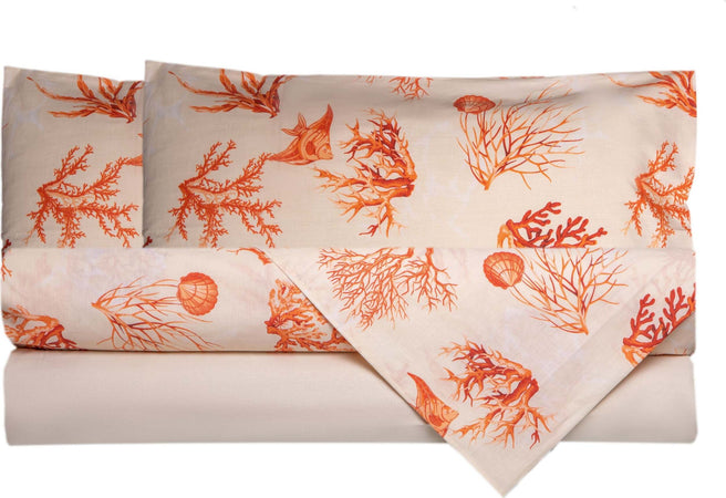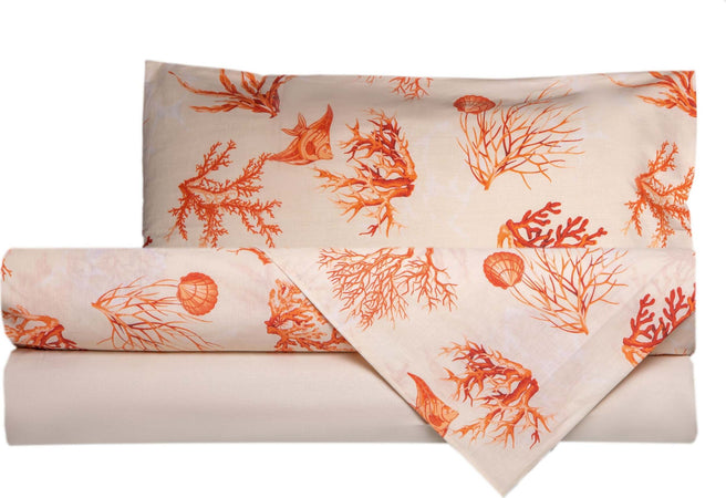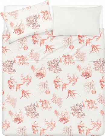 Completo Letto Lenzuola Federe Bifaccia Double Face Stampa Digitale In Cotone Made In Italy Coralli Rosso