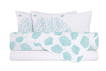 Completo letto lenzuola federe bifaccia double face stampa digitale in cotone made in italy CORALLI TRE PESCI AZZURRO/BIANCO