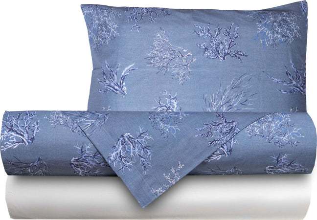 Completo Letto Lenzuola Federe Bifaccia Double Face Stampa Digitale In Cotone Made In Italy Oceano Azzurro
