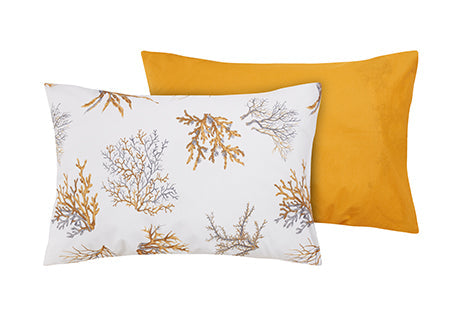 Completo letto lenzuola federe bifaccia double face stampa digitale in cotone made in italy OCEANO BIANCO/ SENAPE