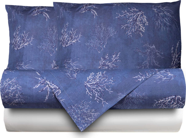 Completo Letto Lenzuola Federe Bifaccia Double Face Stampa Digitale In Cotone Made In Italy Oceano Blu