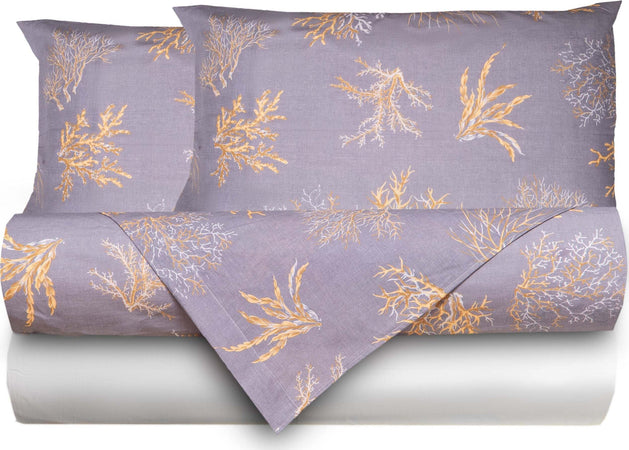 Completo Letto Lenzuola Federe Bifaccia Double Face Stampa Digitale In Cotone Made In Italy Oceano Grigio