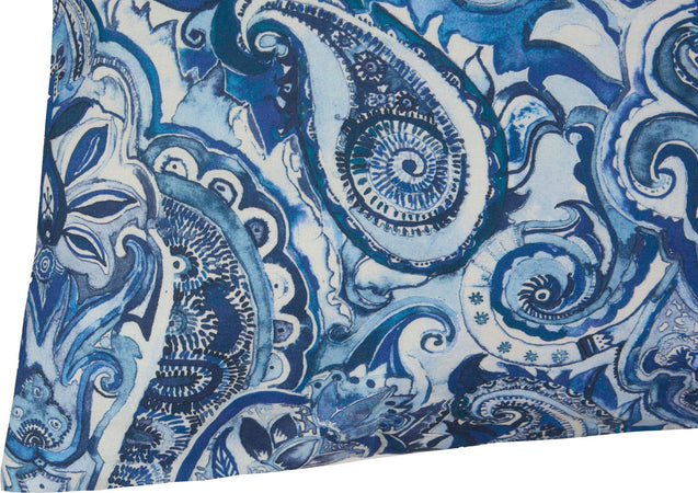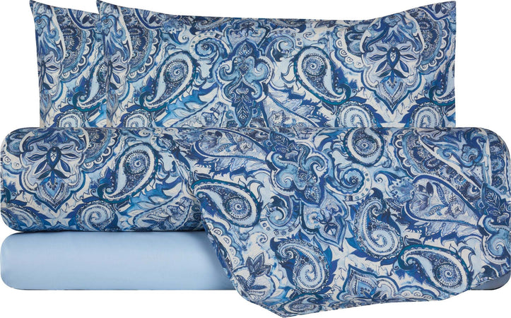 Completo letto lenzuola federe bifaccia double face stampa digitale in cotone made in italy PAISLEY AZZURRO