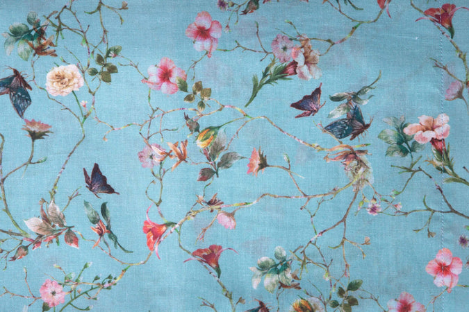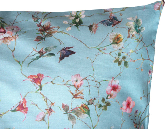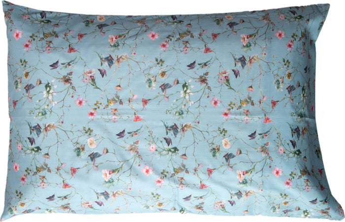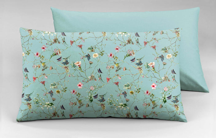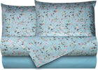 Completo letto lenzuola federe bifaccia double face stampa digitale in cotone made in italy RISVEGLIO DI PRIMAVERA/AZZURRO