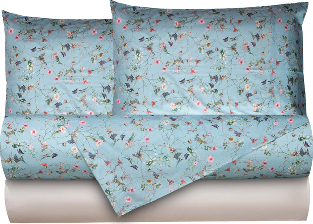 Completo letto lenzuola federe bifaccia double face stampa digitale in cotone made in italy RISVEGLIO DI PRIMAVERA/PANNA
