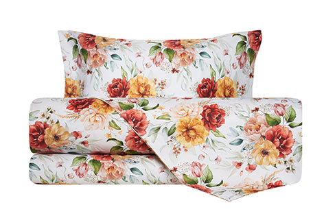Completo letto lenzuola stampato stampa fantasia in raso di puro di cotone made in Italy Matrimoniale Sara