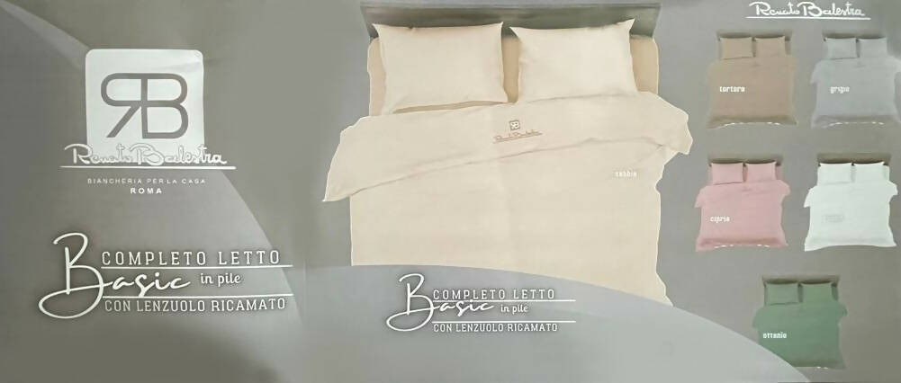 Completo Letto Matrimoniale In Caldo Pile Renato Balestra Basic Con Lenzuolo Ricamato E Coppia Di Federe