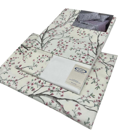 Completo Letto Matrimoniale Raso Digitale Fondo Panna Sopra 250×300 Sotto Angoli 180x200 H.28 2 Federe 50x80