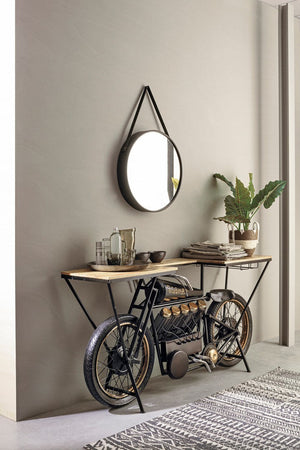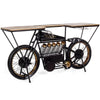 Consolle da bar "Moto Replica" moderno con piano in legno, ruote, 183 x 43 x 89 cm
