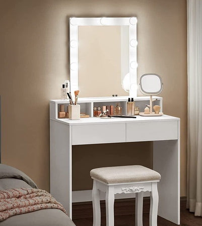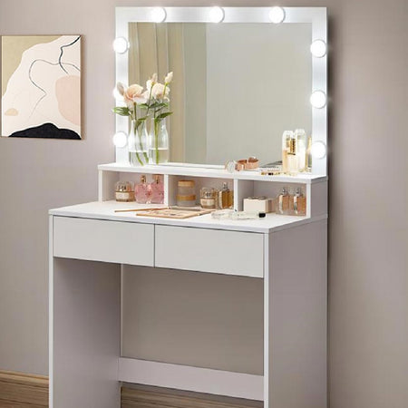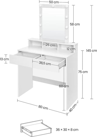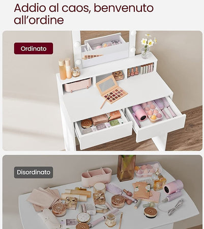 Consolle Trucco con Specchio a Led Mobile Makeup 2 Cassetti 80x40 H 140cm Luce Regolabile