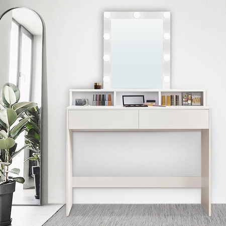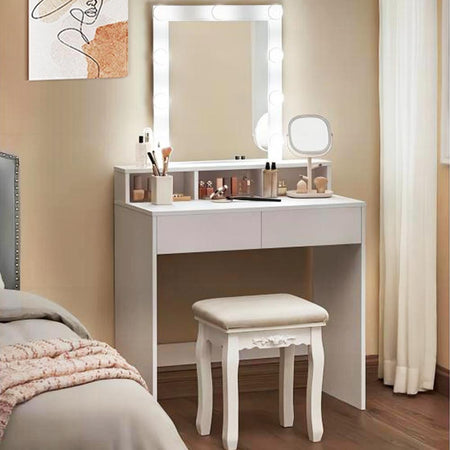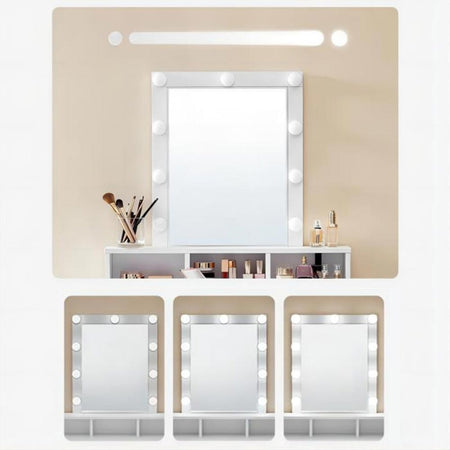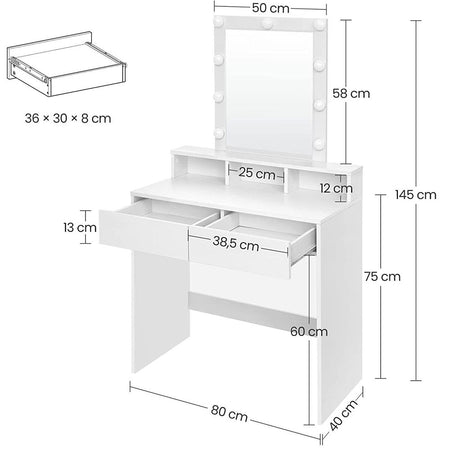 Consolle Trucco con Specchio a Led Mobile Makeup 2Cassetti 80x40 H 145cm Luce Regolabile