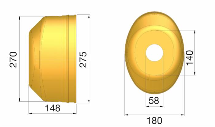 Controcuffia ovale, modello standard, Ø270 - 275, lunghezza 148mm