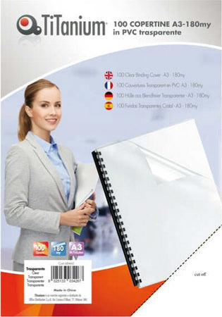 Copertine rilegatura - A3 - 180 micron - PVC - neutro trasparente - Titanium - scatola 100 pezzi