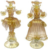 Coppia Damine Goldoniane in Vetro Di Murano 100% Artigianale 2x Sculture Rosa E Oro in Cristallo Venezia Con Polvere D'oro Fatte a Mano Made in Italy