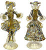 Coppia Damine Goldoniane in Vetro Di Murano100% Artigianale Statuine Dama Cavaliere in Cristallo Oro E Murrine Millefiori Con Polvere D'oro Prodotto Fatto a Mano